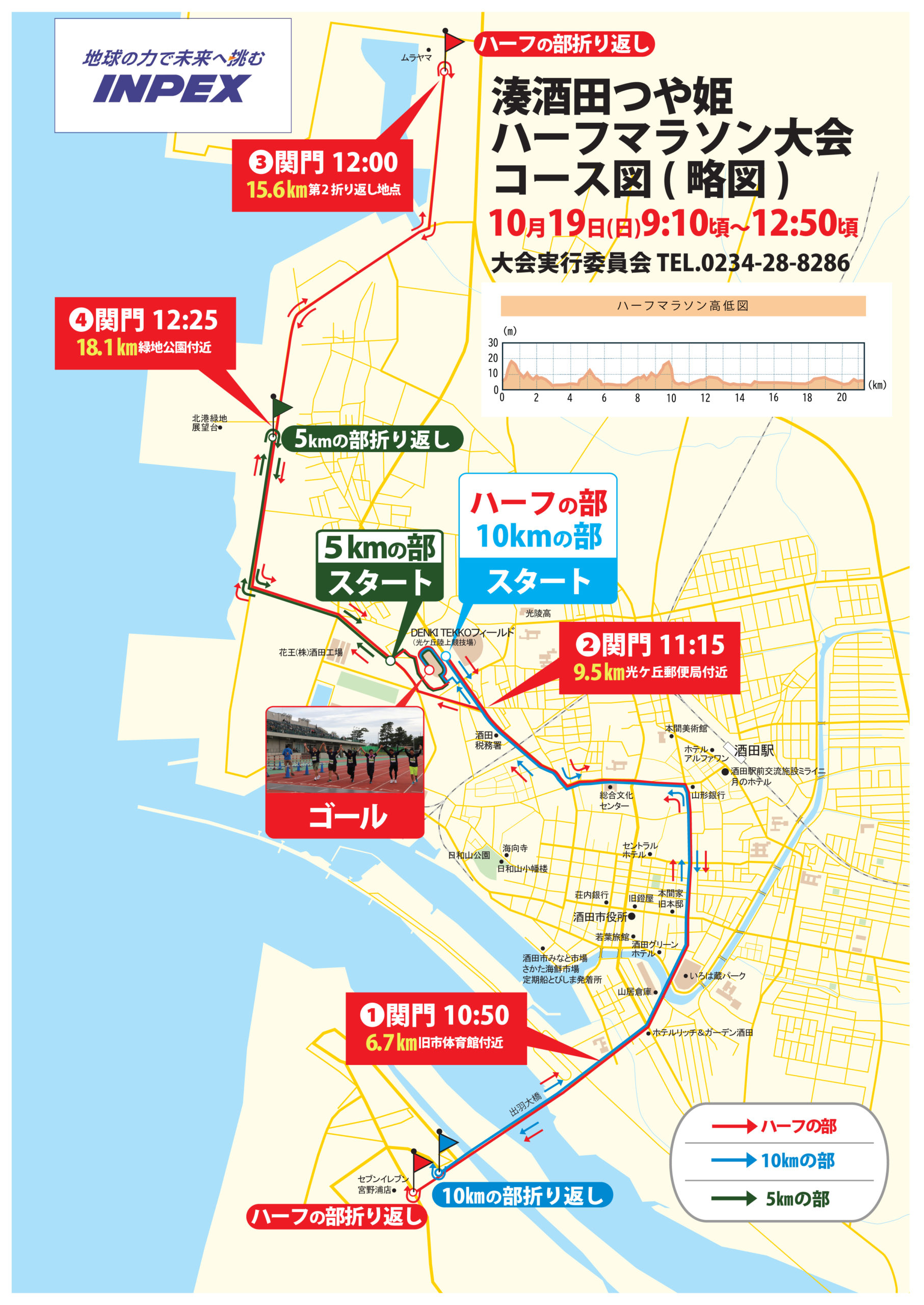 湊酒田つや姫ハーフマラソン大会のコースが一部変わります。