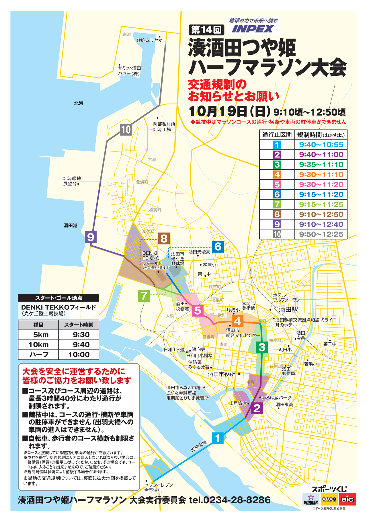◆今後、酒田警察署からの助言やコース設営関係者等との協議により、規制時間に変更が生じる場合があります。